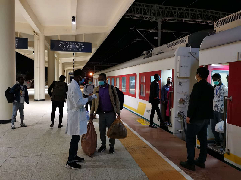 不僅如此,在疫情期間,亞吉鐵路還發(fā)揮自身運(yùn)量大、效率高的優(yōu)勢(shì),積極為埃塞提供應(yīng)急服務(wù)。3月份,在埃塞出現(xiàn)疫情之后,一批在埃塞俄比亞東部城市德雷達(dá)瓦的大學(xué)生急需集中返回首都亞的斯。亞吉鐵路科學(xué)籌劃,在保障車輛清潔衛(wèi)生的情況下,迅速開行2列臨時(shí)旅客列車,將1267名大學(xué)生迅速撤離德雷達(dá)瓦。