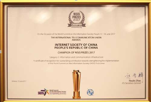 2017年6月13日,國(guó)際電信聯(lián)盟(ITU)在2017年信息社會(huì)世界峰會(huì)(WSIS)上,授予中國(guó)互聯(lián)網(wǎng)協(xié)會(huì)“中國(guó)政務(wù)信息無(wú)障礙服務(wù)體系”2017年信息社會(huì)世界峰會(huì)(WSIS)項(xiàng)目大獎(jiǎng),該獎(jiǎng)項(xiàng)是信息無(wú)障礙領(lǐng)域的唯一獎(jiǎng)項(xiàng)。