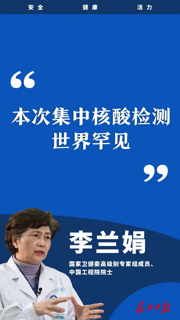 李蘭娟說(shuō),她2月初去武漢,前天又到了武漢,專門(mén)了解此次集中核酸檢測(cè)排查工作,有很多感觸。