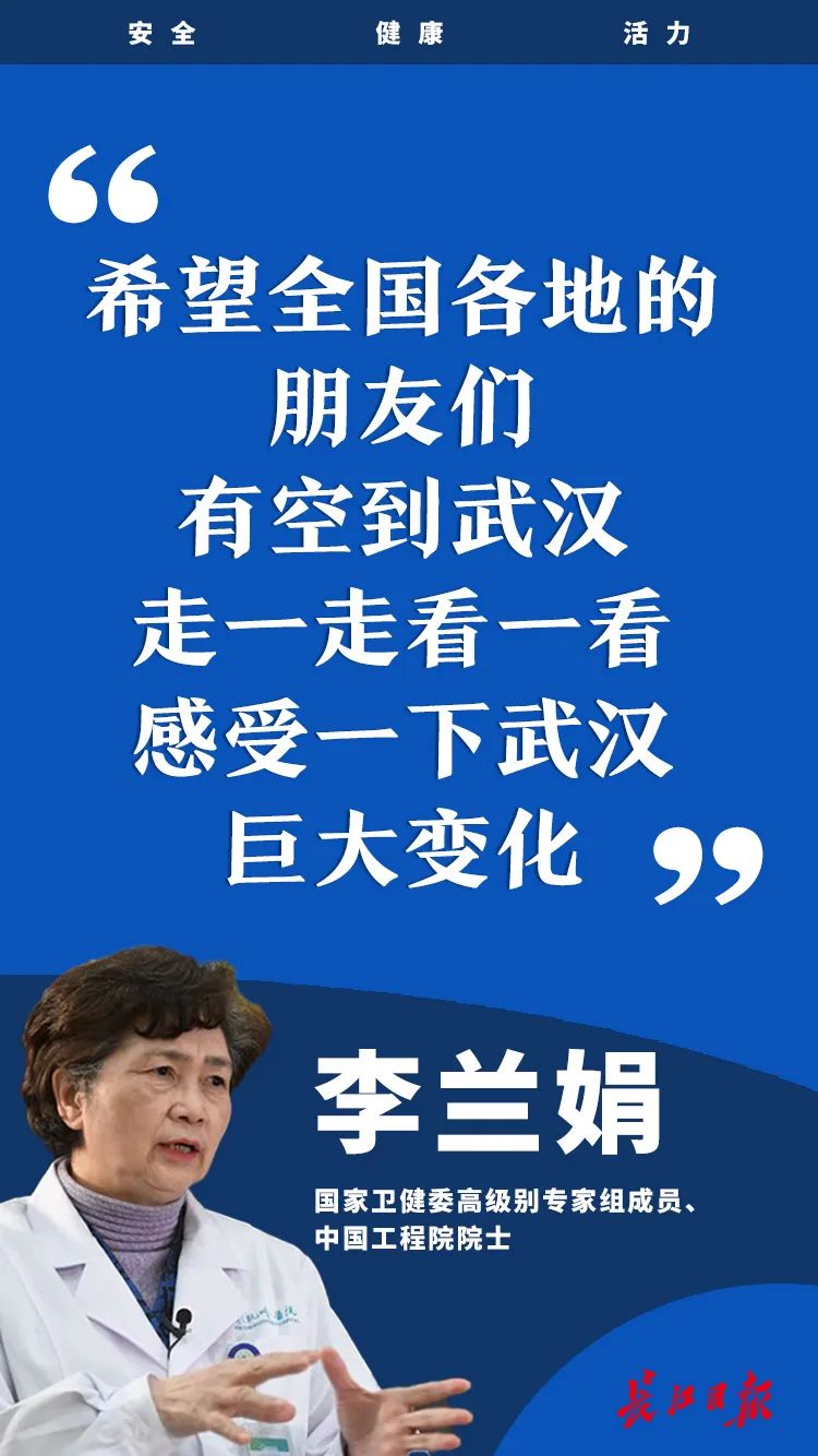 李蘭娟說(shuō),這4組數(shù)據(jù)充分說(shuō)明:武漢是安全的,武漢人也是安全的,出來(lái)的都是健康的,給武漢人要以更多的關(guān)愛(ài)。