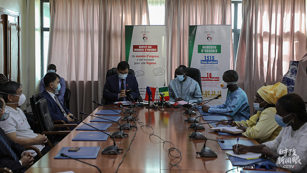 △4月22日,塞內(nèi)加爾舉行中國援塞抗擊新冠肺炎疫情物資交接儀式。這批抗疫物資分別由中國政府、兩家在塞中資企業(yè)捐贈。(總臺央視記者韓蓄提供)