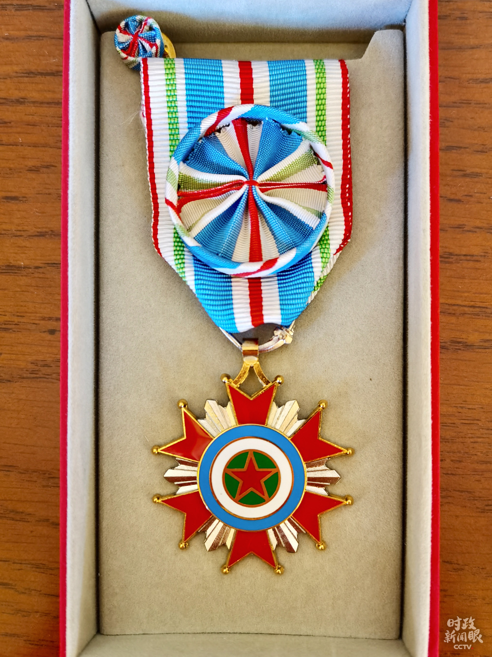 △5月10日,吉布提共和國總理卡米勒向中國赴吉布提抗疫醫(yī)療專家組授勛。曾勇組長被授予“軍官級獨(dú)立日勛章”。(總臺央視記者馬培敏提供)