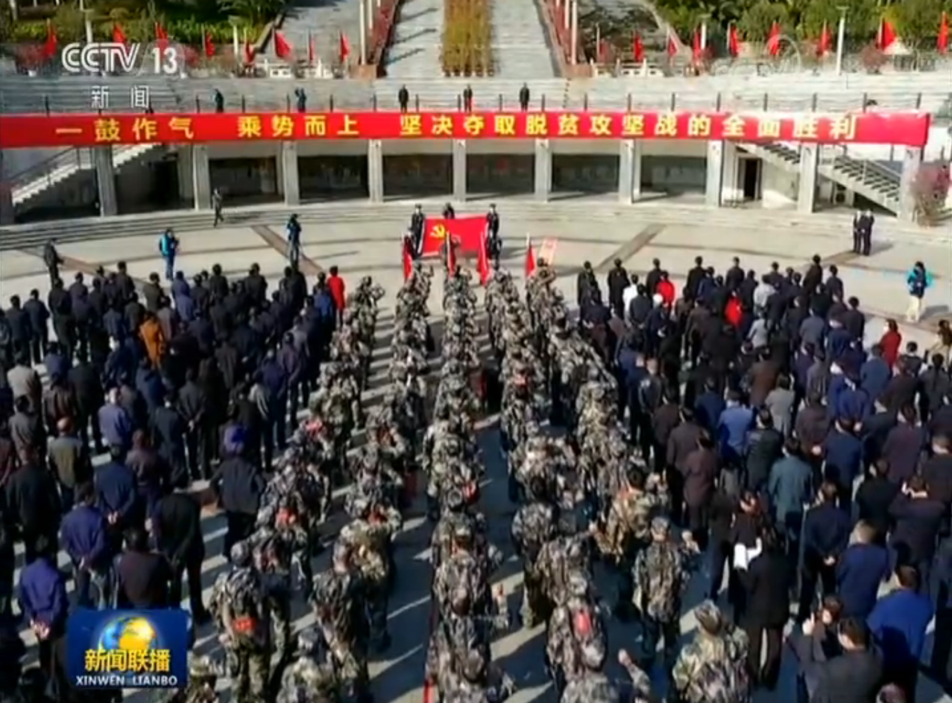出發(fā)前,背包隊(duì)員們?cè)鎸?duì)黨旗宣誓,“不少一戶(hù)、不少一人”“不獲全勝,決不收兵”。