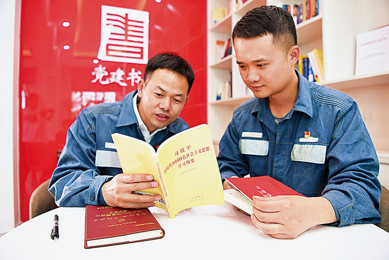 當(dāng)前,理論武裝工作的首要任務(wù)就是堅(jiān)持用習(xí)近平新時(shí)代中國(guó)特色社會(huì)主義思想武裝全黨。圖為南方電網(wǎng)公司貴州凱里供電局精心打造基層黨支部黨建書屋,該公司黨員在黨建書屋學(xué)習(xí)習(xí)近平新時(shí)代中國(guó)特色社會(huì)主義思想。 人民圖片 蔡興文/攝