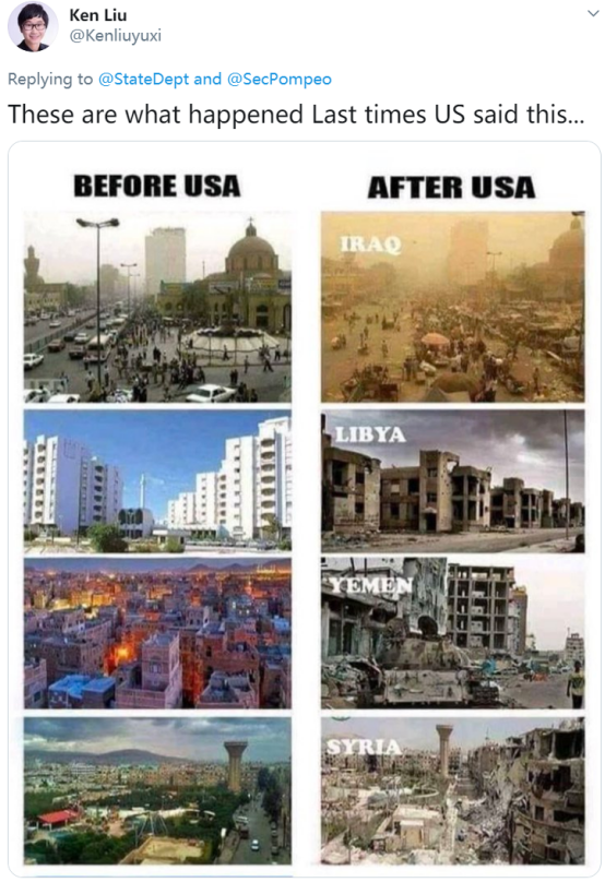 對(duì)于蓬佩奧的邏輯,推特上也有不少網(wǎng)友嚴(yán)重質(zhì)疑。