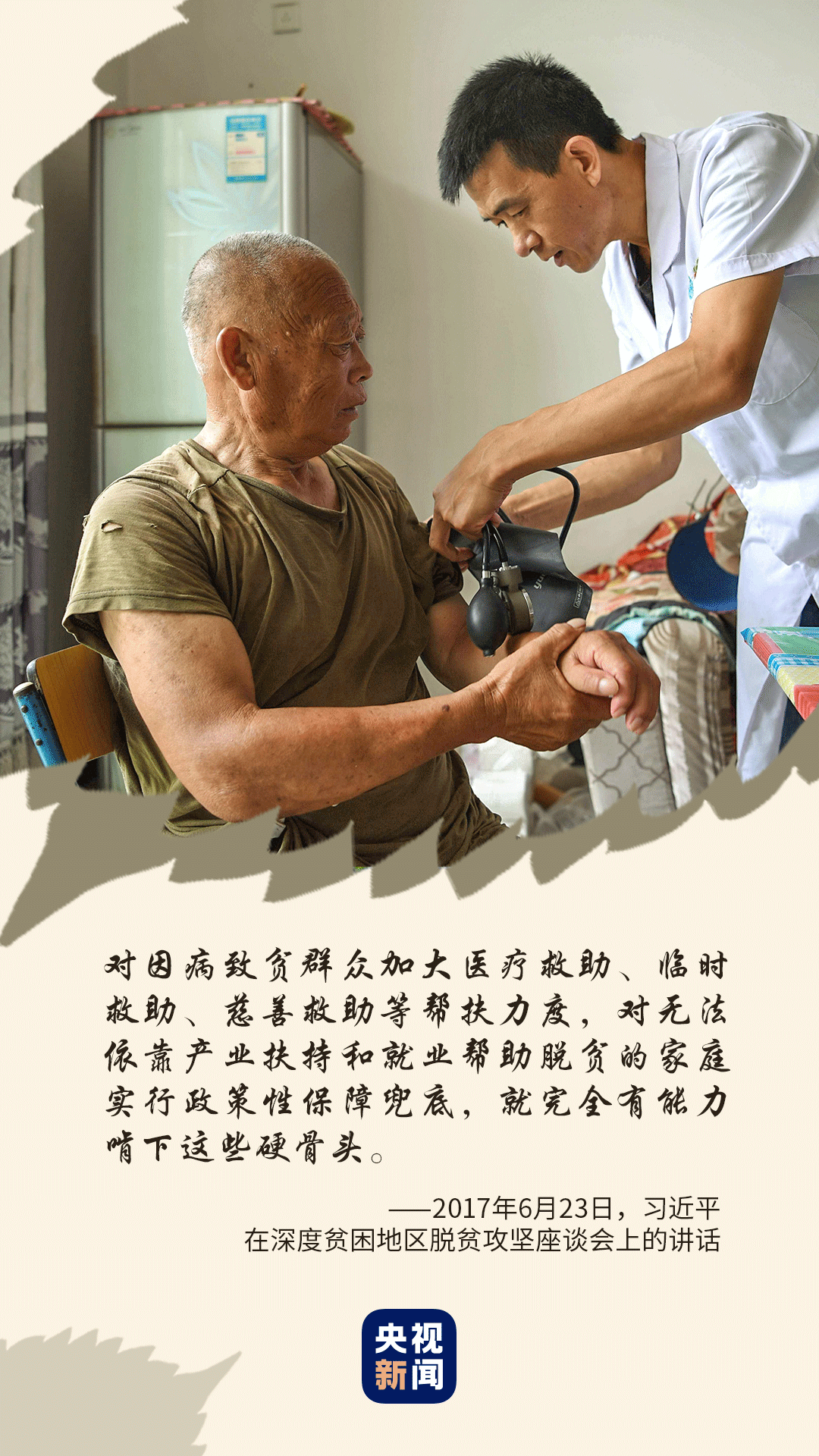 沒有全民健康,就沒有全民小康。貧困地區(qū)群眾身體健康,習(xí)近平總書記念茲在茲。決戰(zhàn)脫貧攻堅(jiān),我們要對(duì)癥下藥、精準(zhǔn)滴灌、靶向治療,努力防止因病致貧、因病返貧。小康路上,一個(gè)都不能少。