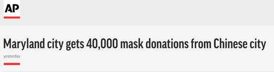 中國援助美醫(yī)療口罩抵達馬里蘭州 美媒:雪中送炭的禮物