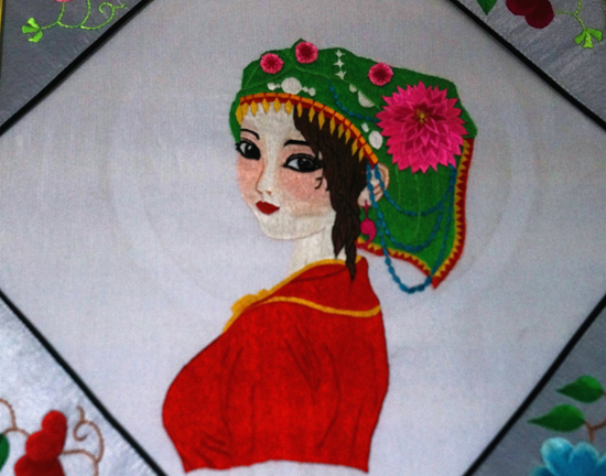 圖為繡娘的刺繡作品在展覽館展出(吳楠 攝)
