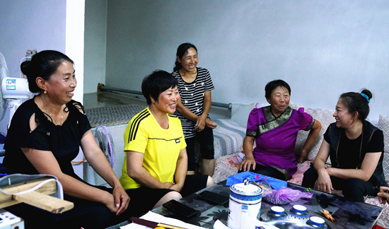 圖為烏遜嘎查的繡娘們聚在一起交流刺繡技藝(皇甫萬里 攝)