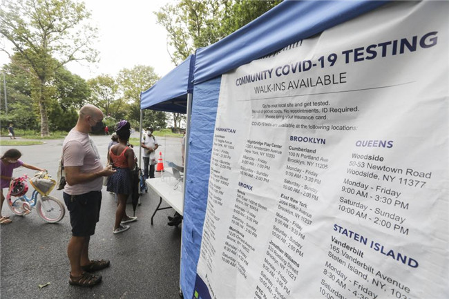8月13日,在美國(guó)紐約日落公園,人們?cè)谝惶幣R時(shí)新冠病毒檢測(cè)點(diǎn)排隊(duì)等待檢測(cè)。(新華社記者 王迎 攝)