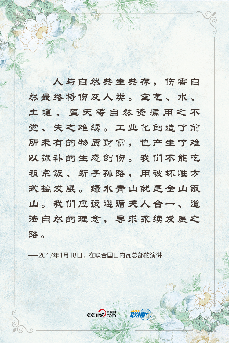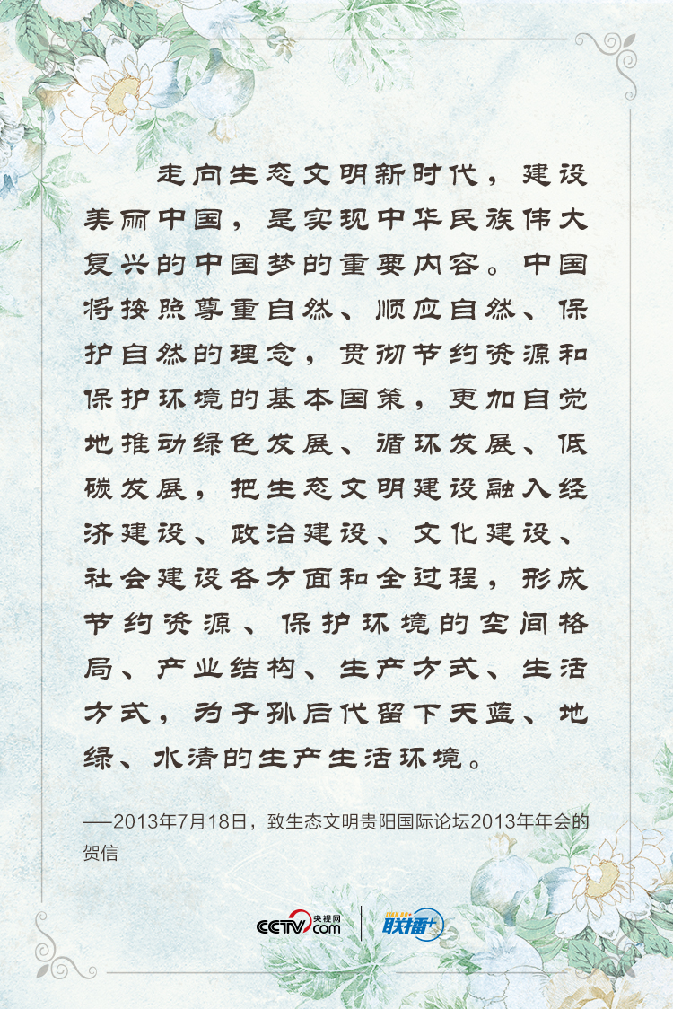 聯(lián)播+“綠水青山就是金山銀山”,“我們要倡導(dǎo)綠色、低碳、循環(huán)、可持續(xù)的生產(chǎn)生活方式”,“建設(shè)天藍(lán)、地綠、水清的美麗中國(guó),讓人民切實(shí)感受到發(fā)展帶來(lái)的生態(tài)效益”。