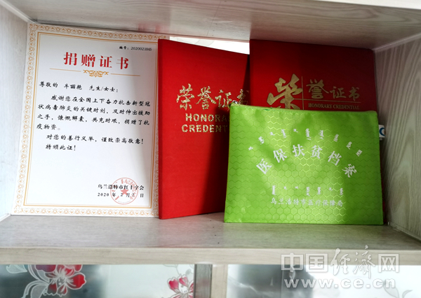 牛麗艷獲得的各種證書。(經(jīng)濟(jì)日?qǐng)?bào)-中國經(jīng)濟(jì)網(wǎng)記者武曉娟/攝)