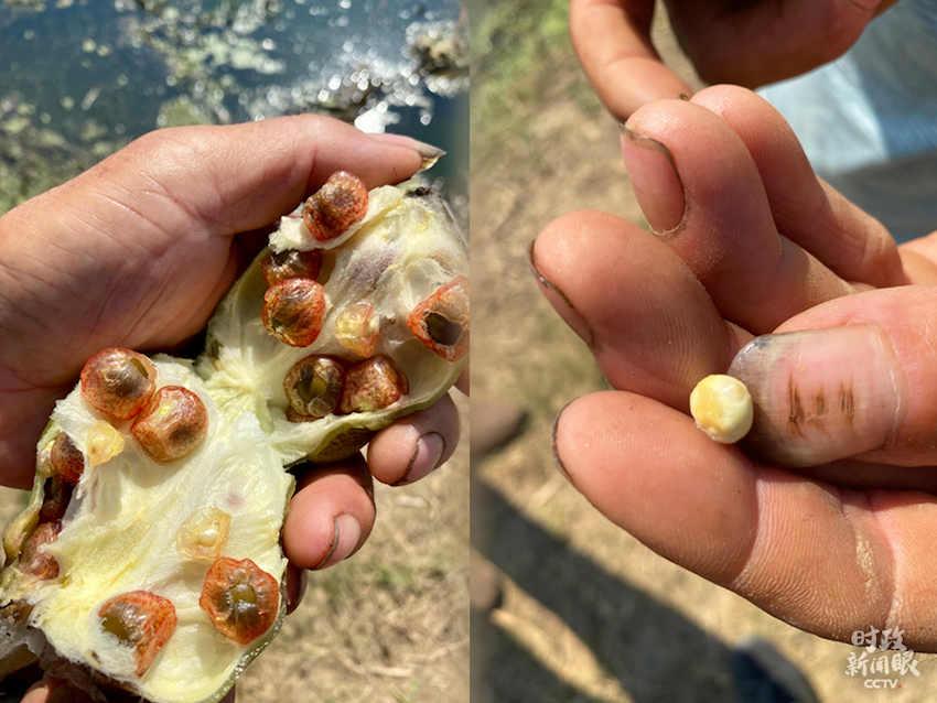△當?shù)胤N植的芡實,可藥食兩用。(總臺央視記者李輝拍攝)