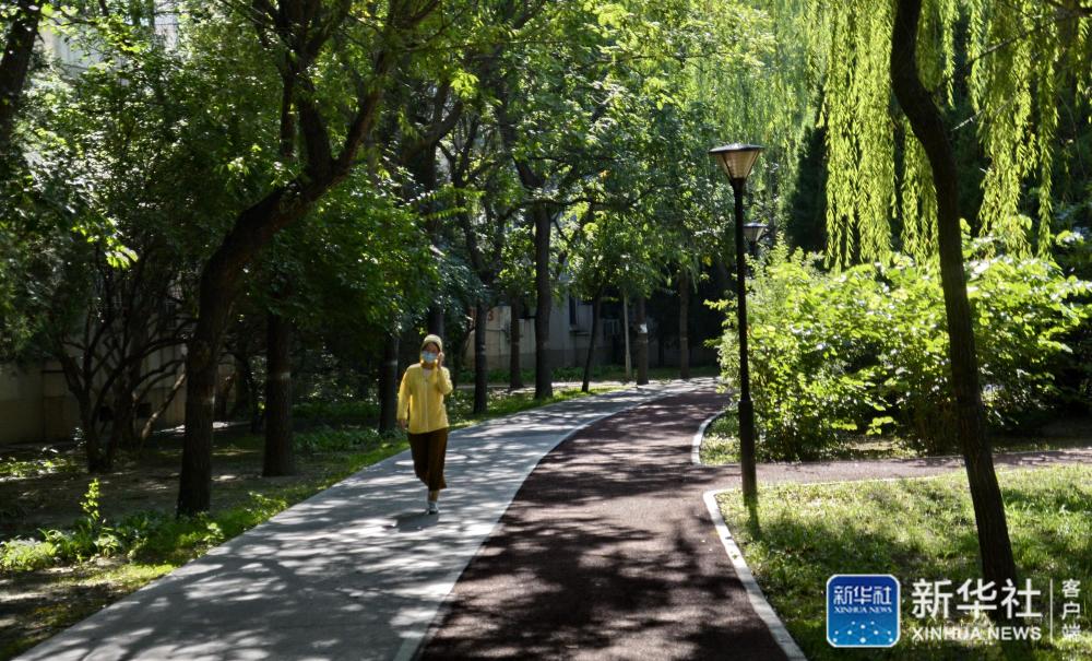 ↑市民在北京市昌平區(qū)龍澤社區(qū)內(nèi)的休閑步道鍛煉身體(8月10日攝)。新華社記者 李欣 攝
