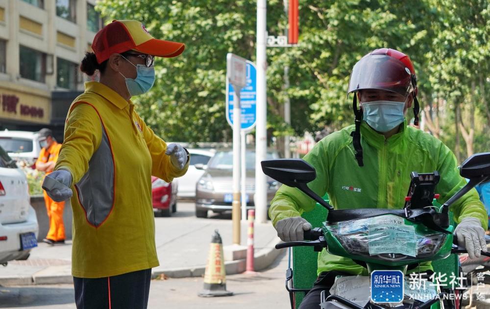 ↑北京市豐臺區(qū)東高地街道的新時代文明實踐中心的志愿者參加疫情防控工作(4月1日攝)。新華社記者 李欣 攝
