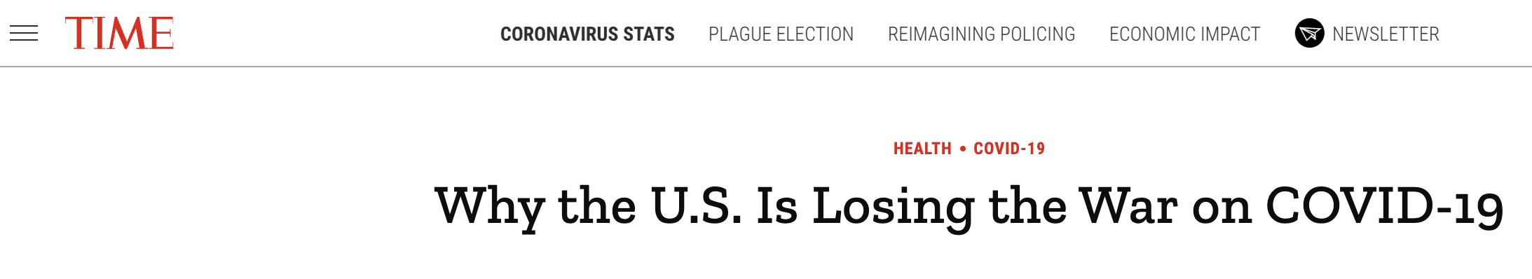 美國《時(shí)代》周刊近日發(fā)文稱,美國肯定會輸?shù)艨箵粢咔榈膽?zhàn)爭,但事實(shí)本不必如此。在G7國家中,只有美國的疫情還在繼續(xù)失控。在疫情暴發(fā)前,美國被認(rèn)為是做好了充分準(zhǔn)備應(yīng)對大規(guī)模疫情的國家之一,這“十分令人沮喪”。