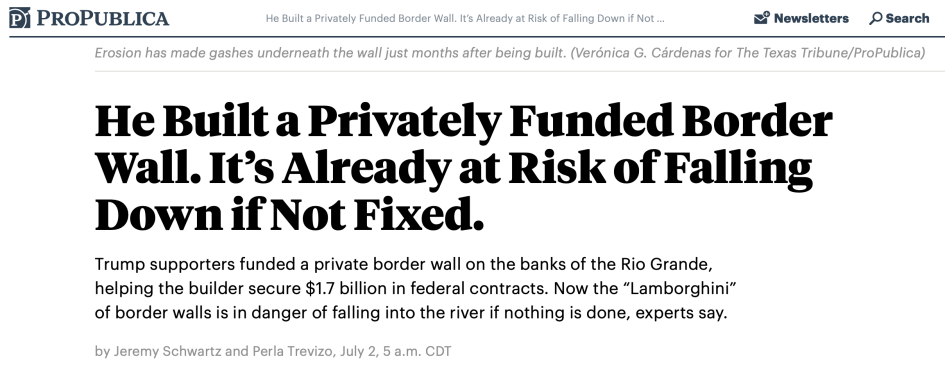 △Propublica報道指出,班農的墻若不修繕,恐有坍塌風險
