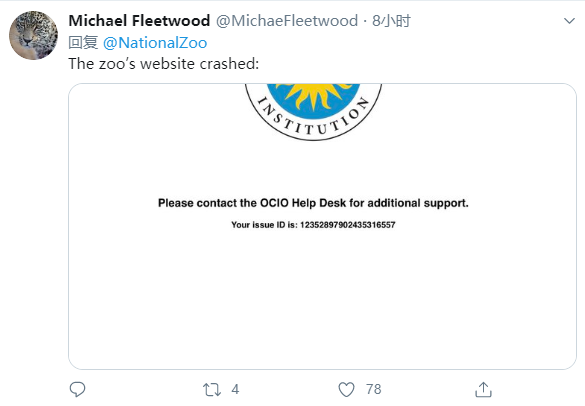 △有網(wǎng)友在社交媒體上發(fā)出史密森尼國家動(dòng)物園網(wǎng)站崩潰截圖