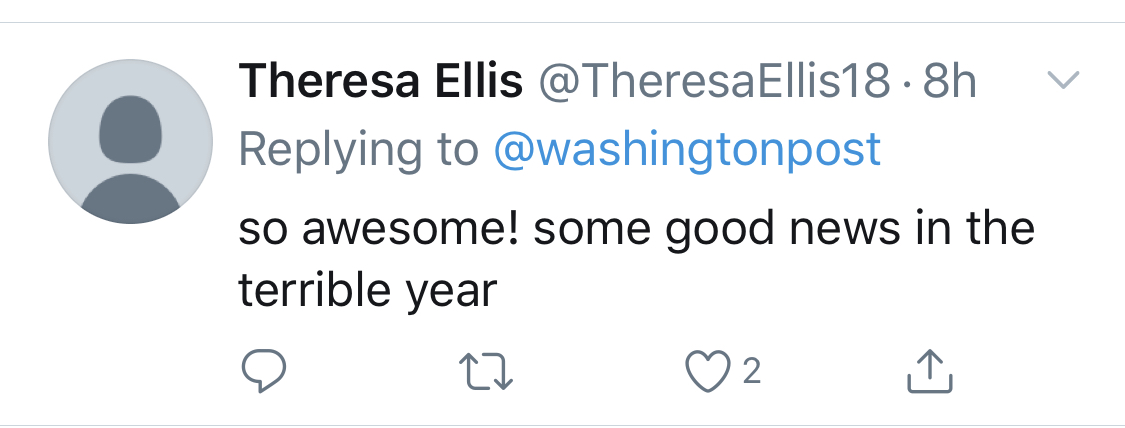 太棒了!糟透了的一年里的一個(gè)好消息。