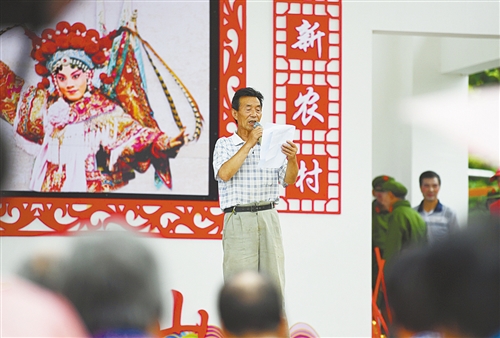 ▲柳山村八組村民杜振洲正在表演詩(shī)朗誦《柳山舊貌換新顏》。為促進(jìn)新時(shí)代文明實(shí)踐活動(dòng)的深入開展,該村積極組織形式多樣的文化活動(dòng),豐富村民業(yè)余文化生活。