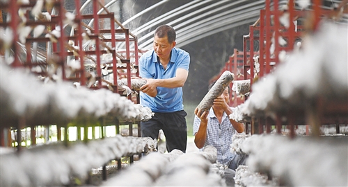 柳山村黨支部書記劉富民在村扶貧互助合作社整理冬菇菌袋。該村扶貧互助合作社成立2年多來,帶動(dòng)了93戶村民穩(wěn)定增收。