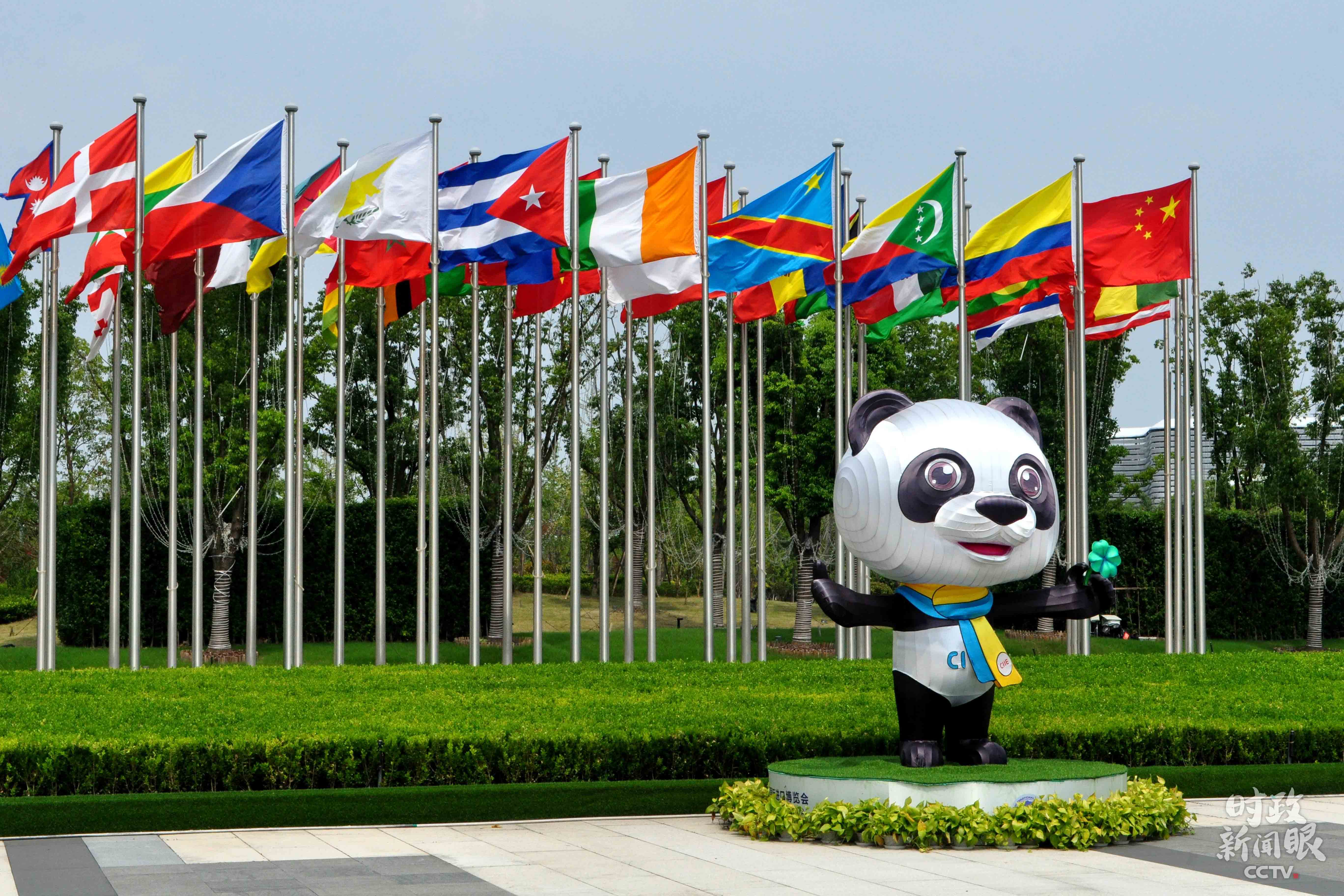 △7月27日,第三屆進(jìn)博會倒計時100天,場館外參展國國旗飄揚(yáng)。