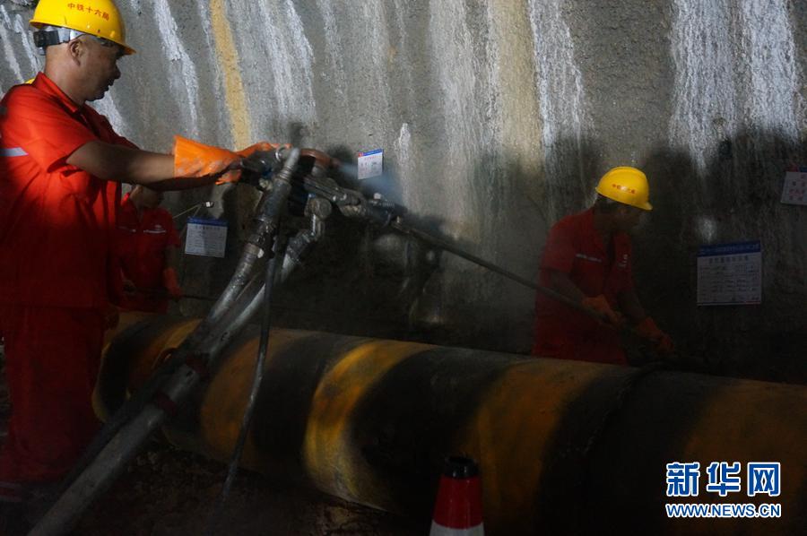8月19日,龍南隧道順利貫通。圖為施工現(xiàn)場。新華網(wǎng)記者劉瓊 攝