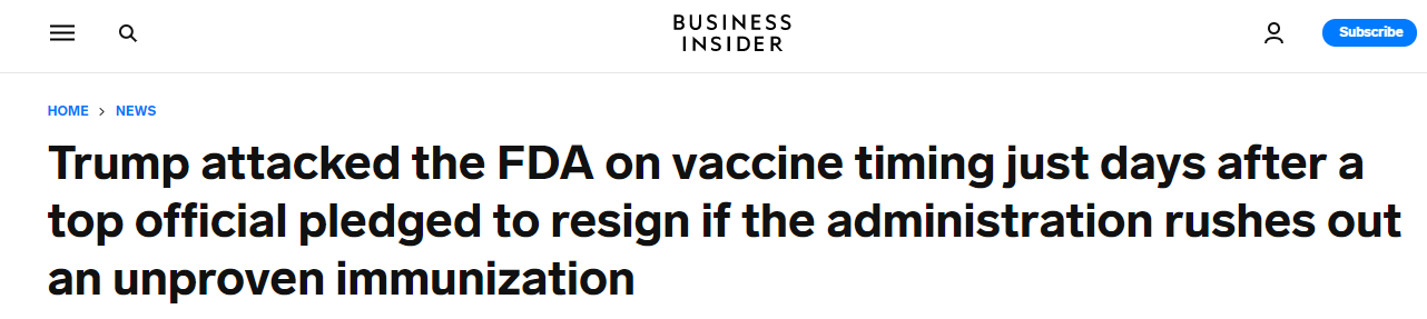真相丨特朗普接連發(fā)難美國食藥監(jiān)管局 專家擔(dān)憂疫苗與政治捆綁