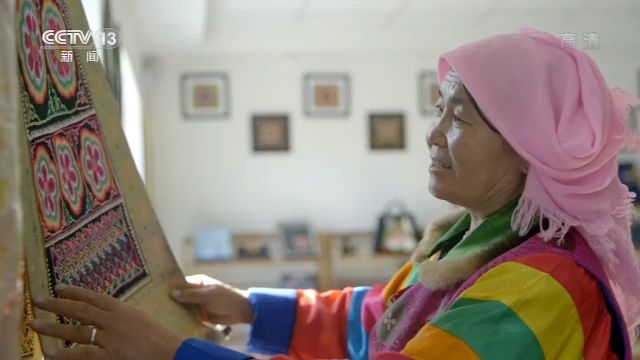 班彥村五社村民 張卓麻什姐:2017年3月金盤繡公司他們來了,(到)我們家來了,他說你們有沒有你們做的什么盤繡?他看了我們的盤繡以后,才給我們下的訂單,才知道我們的盤繡這么強。去年的話,我們這些繡娘們過來這邊做的話,一天20塊的補助,F(xiàn)在的這些老人們住在山上的時候,一毛錢都沒賺的,F(xiàn)在老人們就掙了一萬多(一年)。