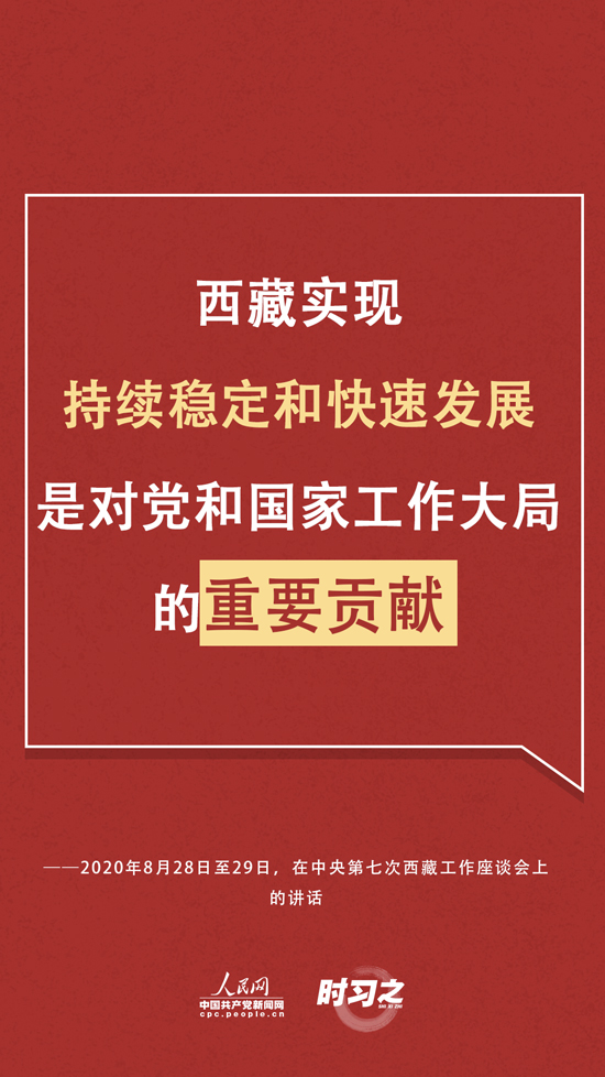 “黨中央關(guān)于西藏工作的方針政策是完全正確的,西藏實(shí)現(xiàn)持續(xù)穩(wěn)定和快速發(fā)展是對(duì)黨和國(guó)家工作大局的重要貢獻(xiàn)。”座談會(huì)上,習(xí)近平代表黨中央向奮斗在雪域高原的廣大同志們致以了誠(chéng)摯的問候。