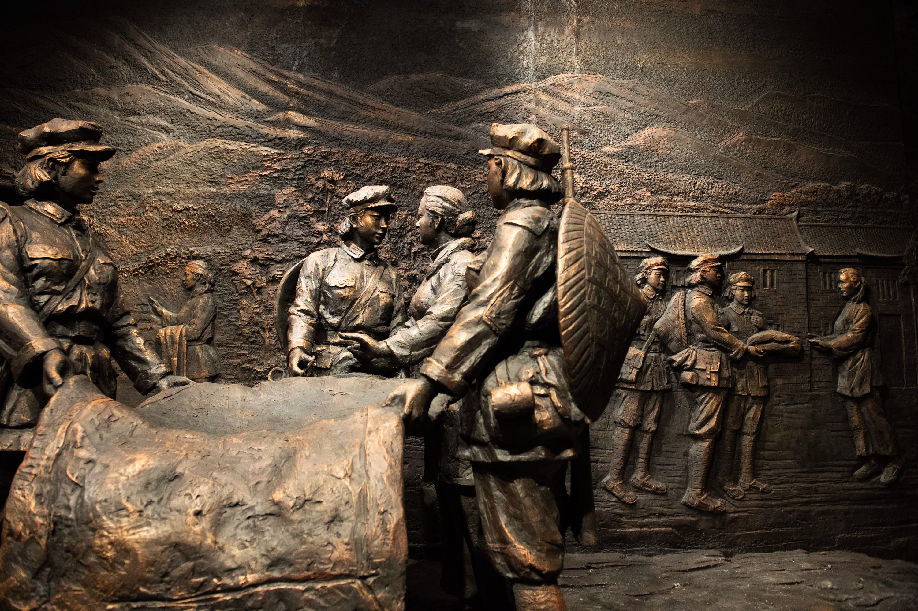 湖南省汝城縣沙洲村廣場上的“半條被子”雕塑。