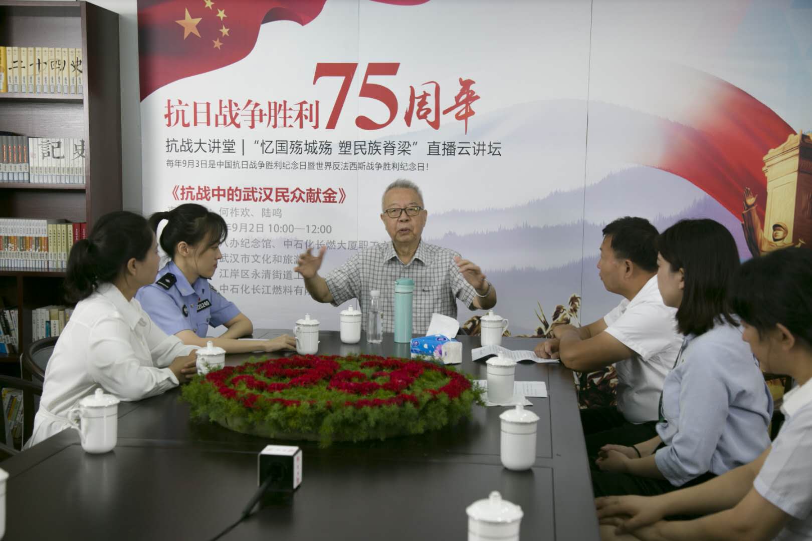 八路軍武漢辦事處舊址紀(jì)念館邀請(qǐng)武漢文化名人何祚歡做客直播間,講述了1938年周恩來(lái)、郭沫若等人號(hào)召的武漢市民支援抗戰(zhàn)的獻(xiàn)金運(yùn)動(dòng)故事,深切地回憶了在祖國(guó)生死存亡之際,中國(guó)人民誓死捍衛(wèi)祖國(guó)的愛(ài)國(guó)情懷和“天下興亡、匹夫有責(zé)”的民族大義,并組織20余名黨員及全體干部職工舉行了莊嚴(yán)紀(jì)念儀式。