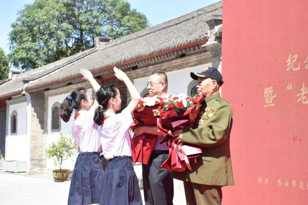 八路軍西安辦事處紀(jì)念館邀請(qǐng)抗戰(zhàn)老兵及老兵后代參加紀(jì)念儀式。育英小學(xué)周恩來(lái)班的少年先鋒隊(duì)員為老兵獻(xiàn)花,表達(dá)了對(duì)抗戰(zhàn)老兵最崇高的敬意,感謝他們?yōu)閲?guó)家、為民族解放、為抗戰(zhàn)勝利所作出的巨大貢獻(xiàn)。