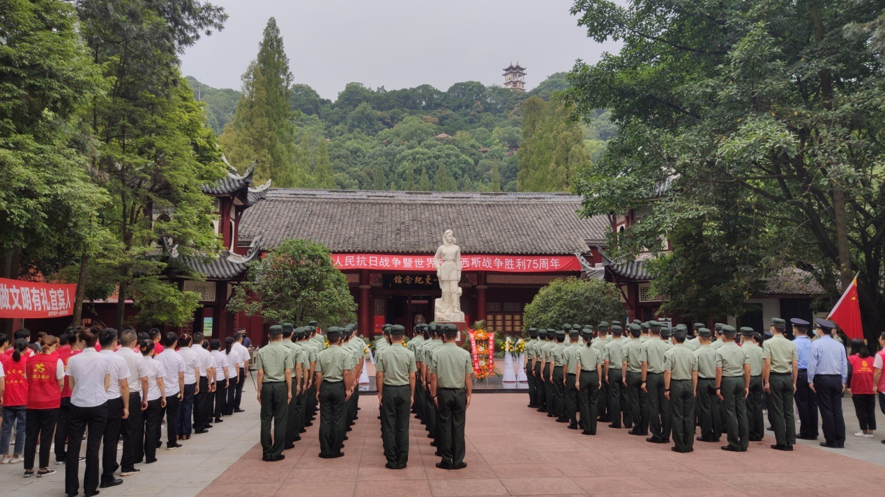 趙一曼紀(jì)念館聯(lián)合駐宜賓部隊(duì)陸航旅、宜賓市志愿服務(wù)聯(lián)合會(huì)、四川省宜賓監(jiān)獄等單位200余人在一曼廣場(chǎng)舉行紀(jì)念儀式。各單位代表向在抗日戰(zhàn)爭(zhēng)中犧牲的革命先烈和死難同胞敬獻(xiàn)花籃。