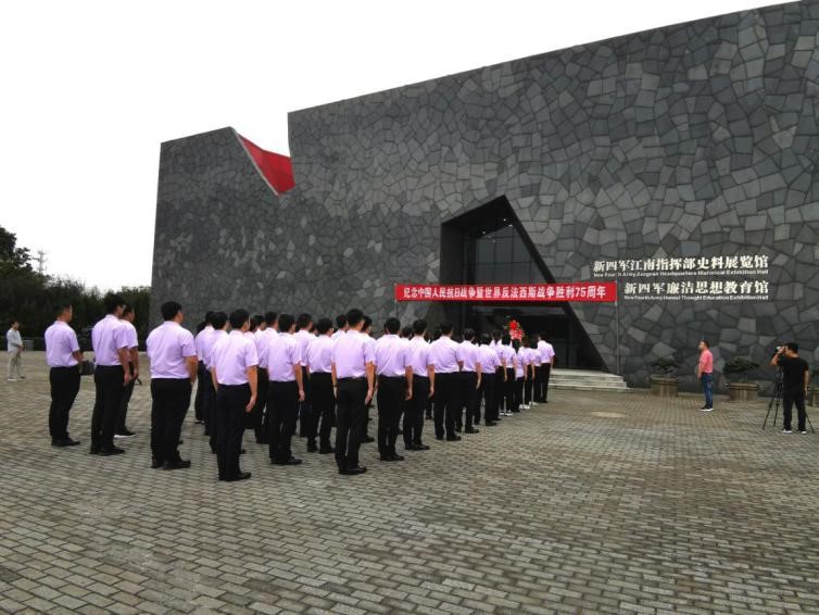 新四軍江南指揮部紀(jì)念館全體人員在紀(jì)念館廣場(chǎng),舉行升國(guó)旗、奏國(guó)歌、默哀等紀(jì)念儀式,深切緬懷在抗日戰(zhàn)爭(zhēng)中犧牲的革命先烈,并推出了《紅色傳承童畫(huà)心聲》主題展覽,展現(xiàn)了新時(shí)代中小學(xué)生對(duì)抗戰(zhàn)故事的認(rèn)識(shí)與理解。活動(dòng)結(jié)束后,全體人員前往溧陽(yáng)西山烈士陵園參觀尋訪,緬懷先烈。