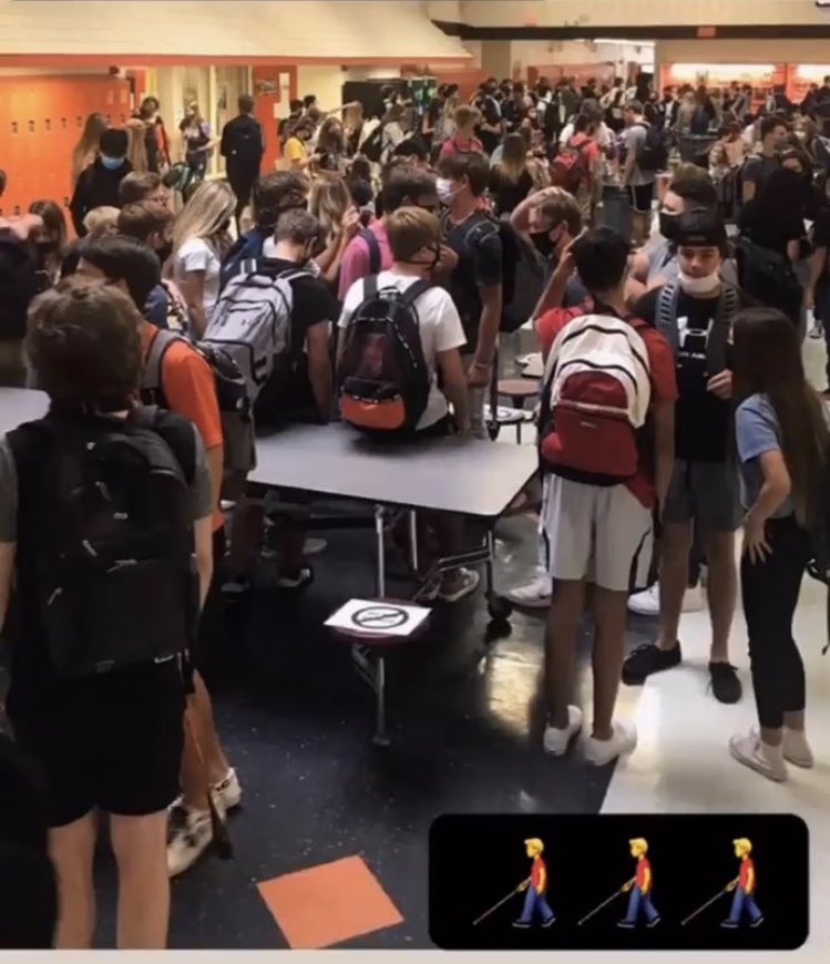 △佛羅里達(dá)州一所中學(xué)的開(kāi)學(xué)第一天 圖片來(lái)源:《華盛頓郵報(bào)》