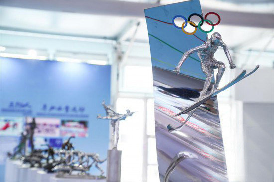 △北京奧林匹克公園中軸景觀大道室外展館A館內(nèi)陳列的冬季運動雕塑