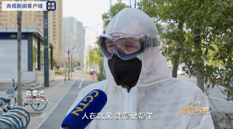 弗雷德是一名法國(guó)人,8年前隨愛(ài)人來(lái)到武漢,在武漢理工大學(xué)做法語(yǔ)教師。疫情暴發(fā)后,弗雷德選擇留了下來(lái),做一名志愿者。