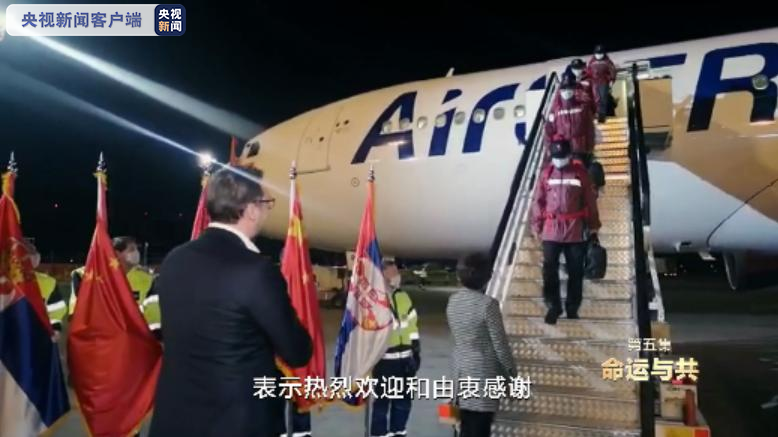 當(dāng)?shù)貢r(shí)間3月21日,中國(guó)援助塞爾維亞的6人醫(yī)療專家組攜帶十幾噸醫(yī)療物資,抵達(dá)貝爾格萊德。塞爾維亞總統(tǒng)武契奇親自到機(jī)場(chǎng)迎接。在現(xiàn)場(chǎng),飛機(jī)舷梯旁,兩國(guó)國(guó)旗各有一角,被系在一起。武契奇捧起五星紅旗,獻(xiàn)上深情一吻。