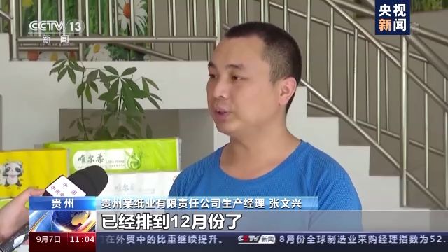 貴州某紙業(yè)有限責任公司生產(chǎn)經(jīng)理 張文興:從3月份到6月份接的單,已經(jīng)排到12月份。一個月我們的出口量的話跟以前(去年同期相比)上升了有30%左右。