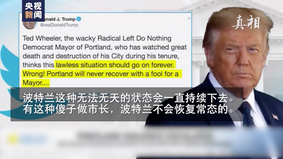 特朗普連發(fā)數(shù)條推特大罵波特蘭民主黨籍市長(zhǎng)。
