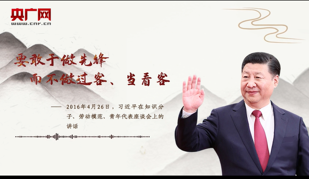 習(xí)近平:要敢于做先鋒,而不做過客、當(dāng)看客,讓創(chuàng)新成為青春遠(yuǎn)航的動(dòng)力,讓創(chuàng)業(yè)成為青春搏擊的能量,讓青春年華在為國家、為人民的奉獻(xiàn)中煥發(fā)出絢麗光彩。