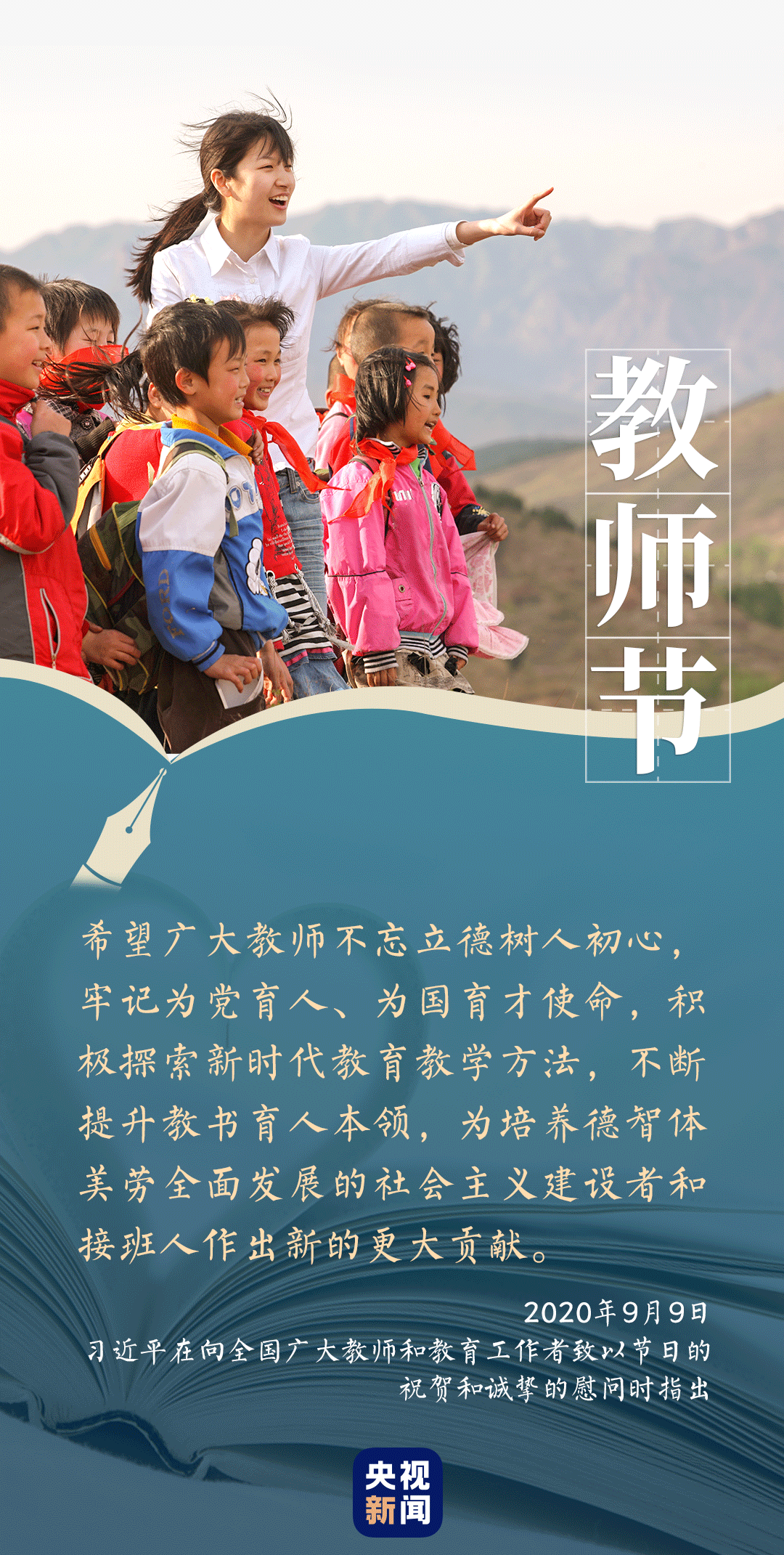 2015年9月9日,習(xí)近平給“國培計劃(2014)”北京師范大學(xué)貴州研修班全體參訓(xùn)教師回信,指出“ 發(fā)展教育事業(yè),廣大教師責(zé)任重大、使命光榮”。