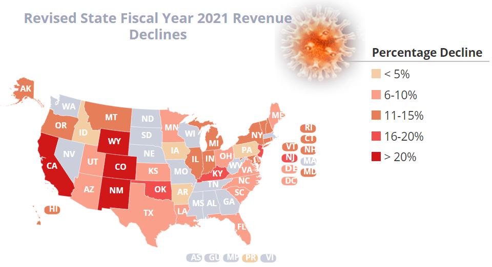 美國從3月中旬宣布進(jìn)入國家緊急狀態(tài)已經(jīng)近半年,各地的疫情危機(jī)還未過去,又迎來了一場新危機(jī)——多地政府已入不敷出,難以為繼。根據(jù)美國“全國州議會會議(NCSL)”已掌握的數(shù)據(jù),近70%的州2021財政年度的收入將直線下降。其中,美國第一經(jīng)濟(jì)大州加州的財政收入下跌可能超過20%。