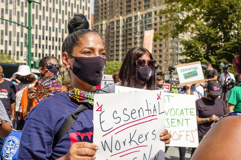 △面臨解雇風(fēng)險的紐約市政府雇員舉行抗議 圖自《每日新聞》