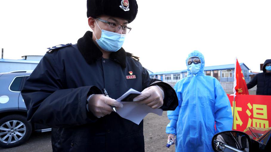 在卡點執(zhí)勤,挑戰(zhàn)最大的工作就是對非當?shù)貞艏藛T進行勸返。面對試圖沖卡的車輛,佐強堅決予以制止,在卡點執(zhí)勤期間,他共勸返551人次、328臺車輛。不執(zhí)勤的時候,佐強就在附近村子里幫助其他同事編輯防疫資料,向不佩戴防護用具、隨意外出的村民普及防疫知識。