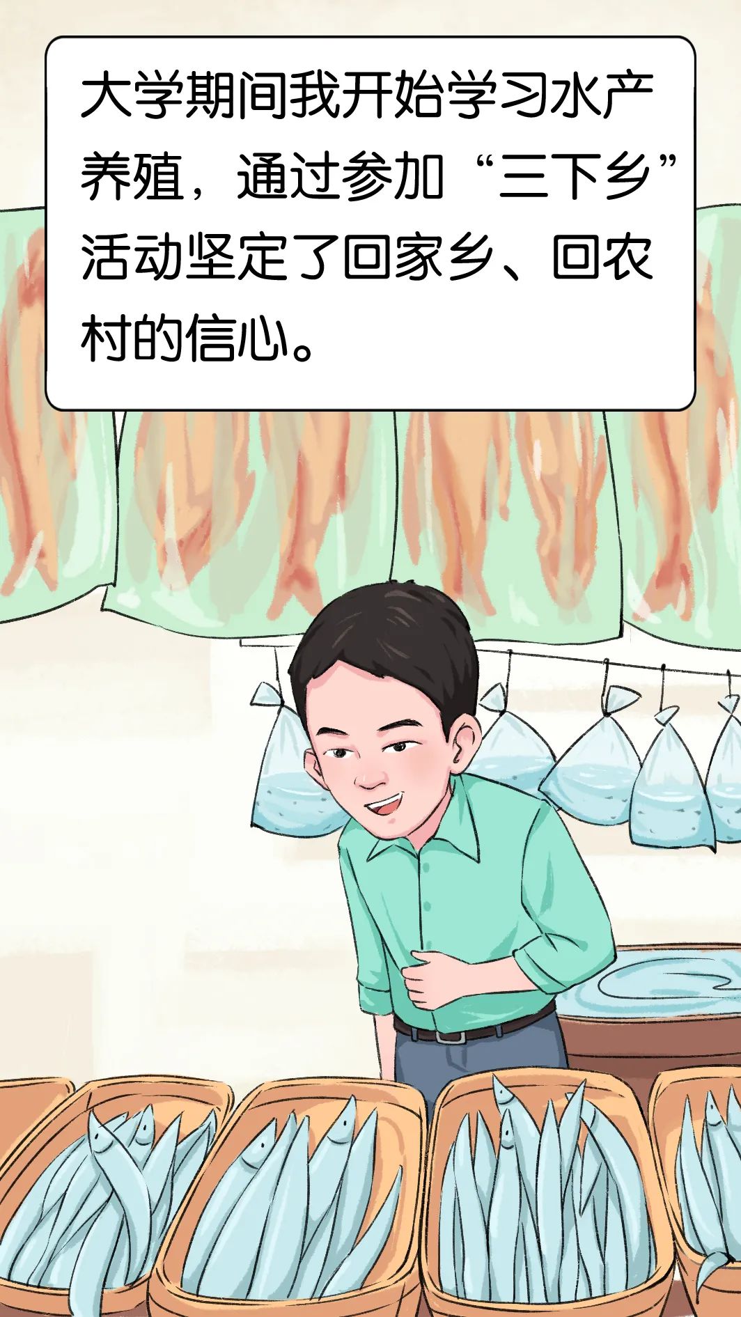 扎進(jìn)田間地頭、穿梭于公司、養(yǎng)殖基地和超市,來(lái)往于各大科研院所、奔波于各大水產(chǎn)交易市場(chǎng),解決一個(gè)個(gè)技術(shù)、管理、銷售上的難題,是“90后”新農(nóng)民林俊的日常生活。2015年,林俊還在廣州體育學(xué)院讀書時(shí),就已開(kāi)始學(xué)習(xí)水產(chǎn)養(yǎng)殖。在大學(xué)期間,他主動(dòng)參加“三下鄉(xiāng)”調(diào)研,了解到佛山現(xiàn)代農(nóng)業(yè)發(fā)展有很大的空間和發(fā)展前景,于是堅(jiān)定了回家鄉(xiāng)、回農(nóng)村的信心。