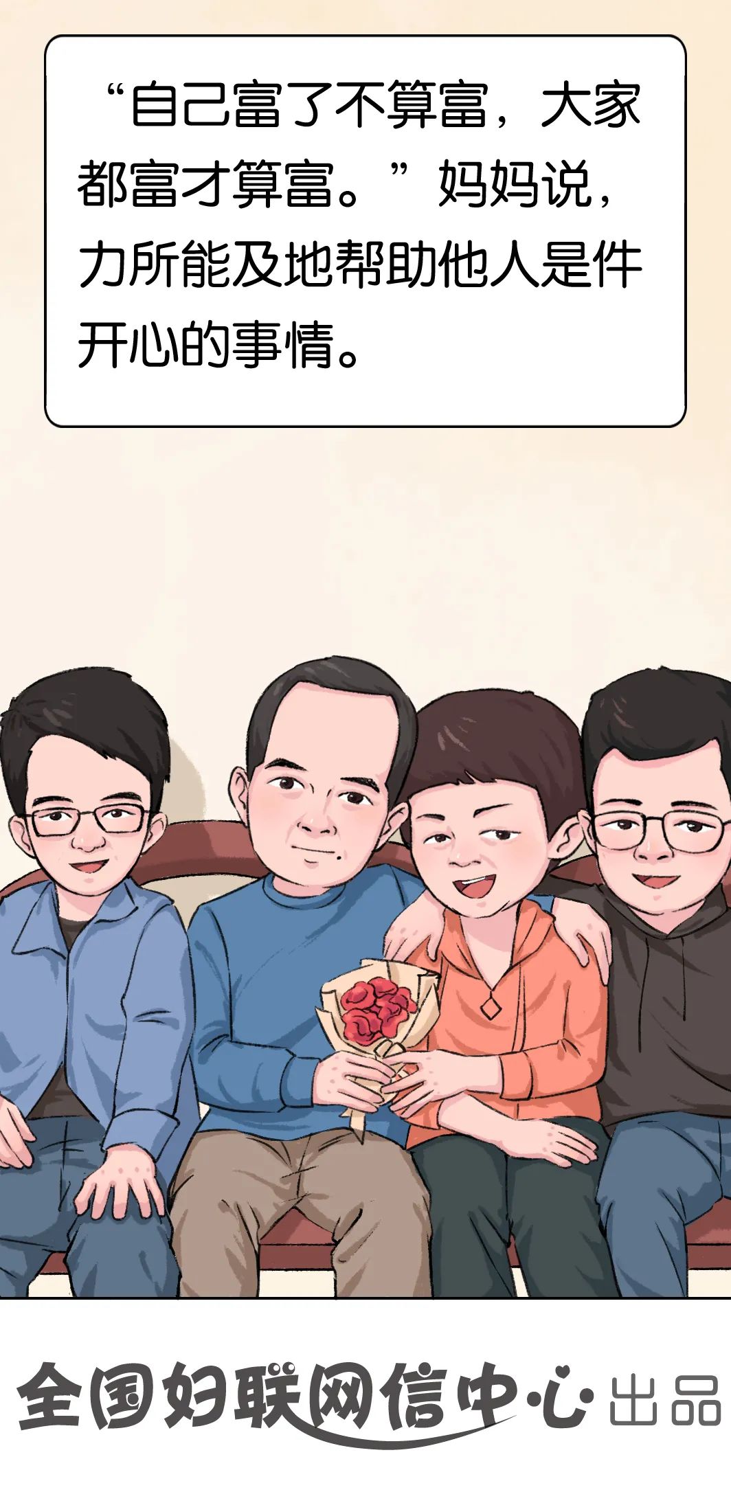 2019年,莫玉婷家庭被評(píng)為全國(guó)最美家庭。尋找“最美家庭”活動(dòng)是全國(guó)婦聯(lián)推出的“家家幸福安康工程”的重要組成部分。為此,“女性之聲”特別策劃并推出“家家幸福安康”系列漫畫,將全國(guó)最美家庭的動(dòng)人故事講給你聽(tīng)。
