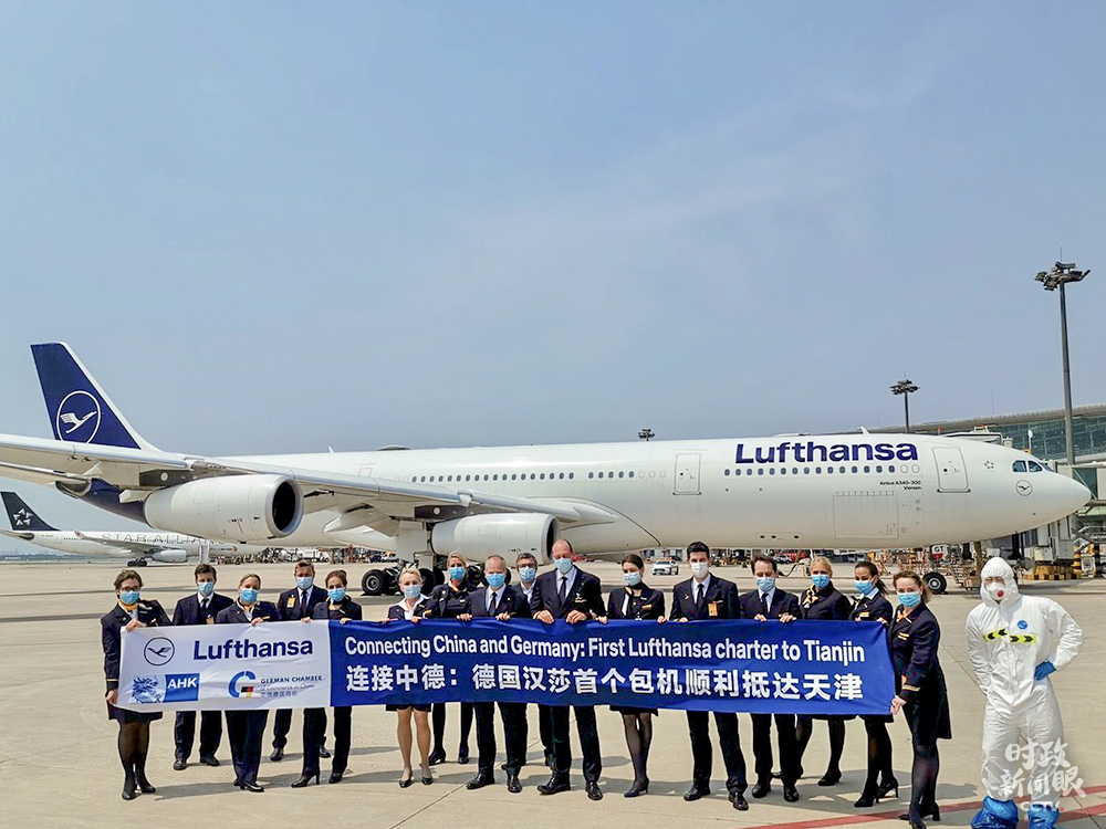 △5月30日,德國(guó)漢莎航空LH342航班承運(yùn)約200名德國(guó)企業(yè)家、技術(shù)專家等旅客,自法蘭克福飛抵天津。這是中德之間的首班復(fù)工包機(jī),兩國(guó)間的“快捷通道”得以實(shí)現(xiàn)。