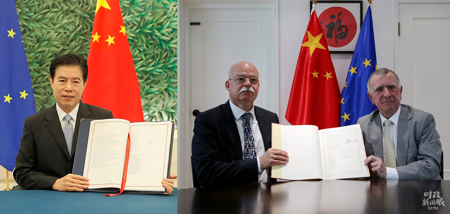△中歐雙方代表的簽字(來源于歐盟駐華大使社交媒體)